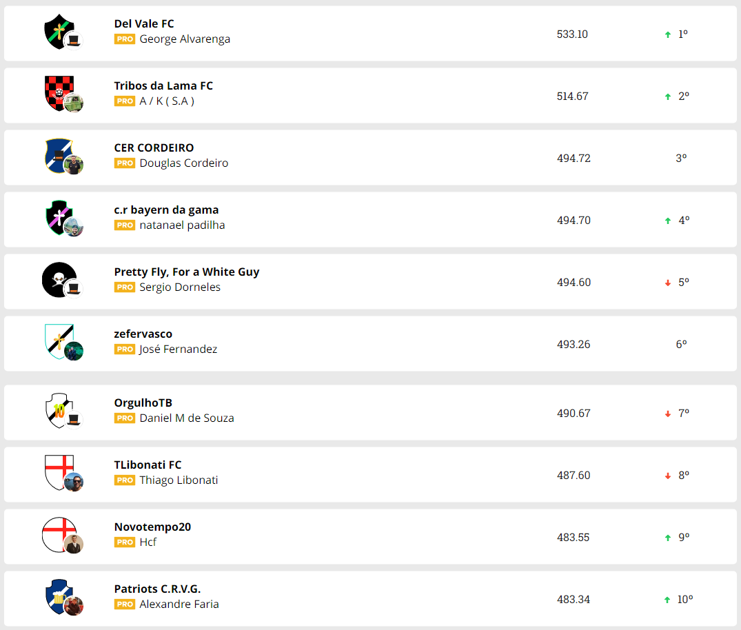 10/05/23 - Cartola: Confira a classificação da Liga NETVASCO após a 4ª rodada