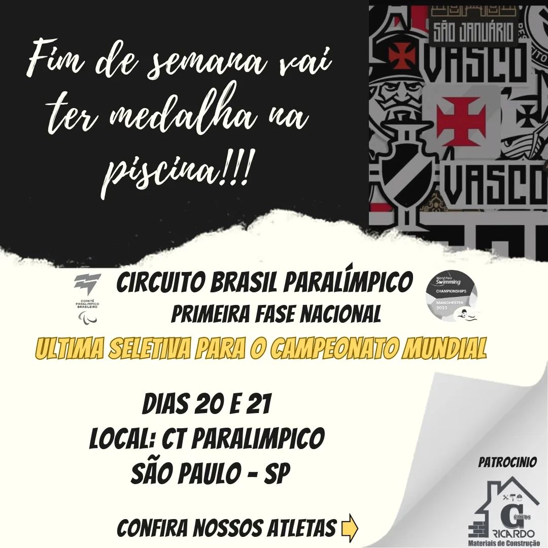 Os nadadores vascaínos disputam neste sábado, 20, e domingo, 21, a primeira fase Nacional do Circuito Brasil no CT Paralímpico, em São Paulo. 🏊♀️🏊♂️