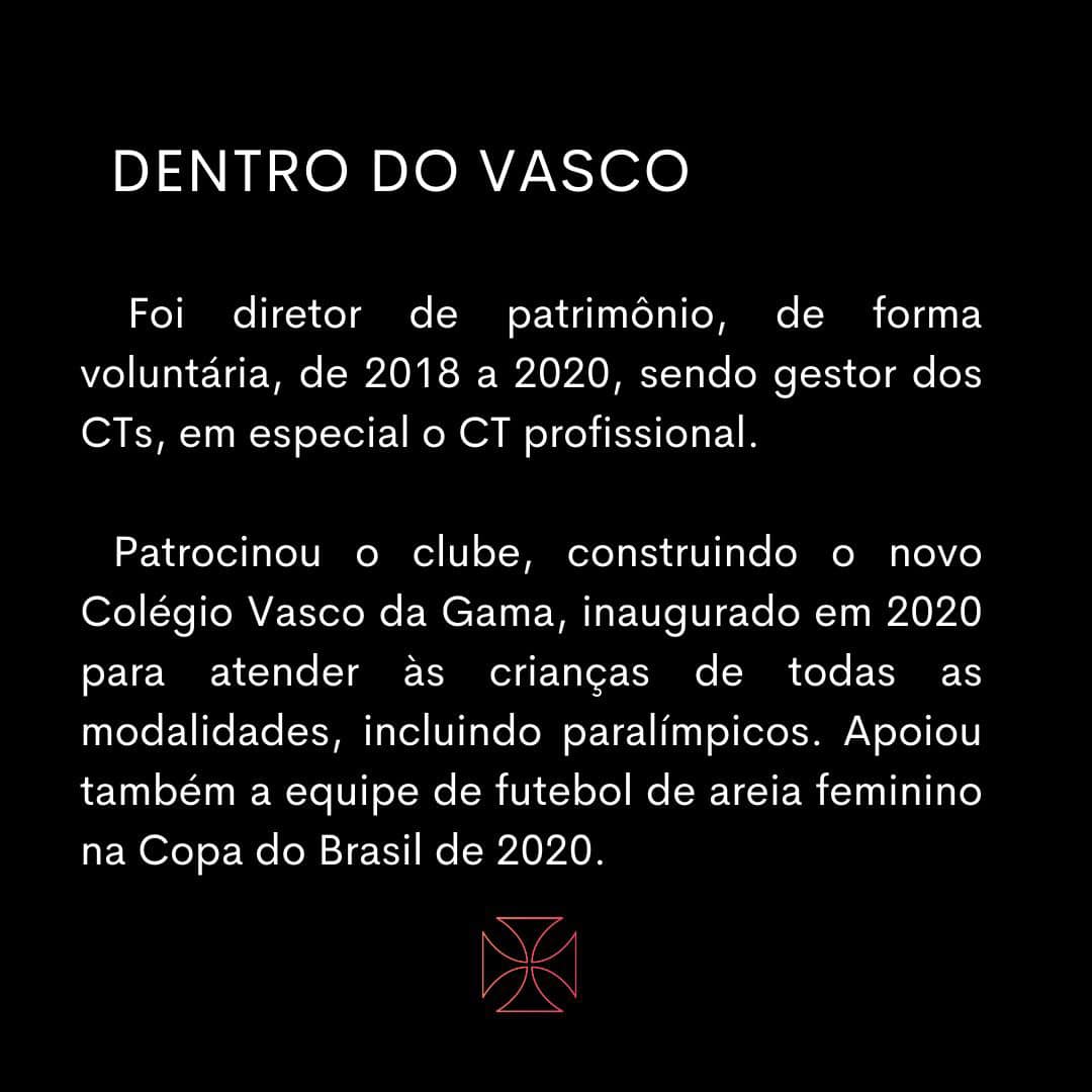 Atual 1º VP do Camisas Negras, foi escolhido candidato à presidência do Club de Regatas Vasco da Gama para o pleito de 2023.