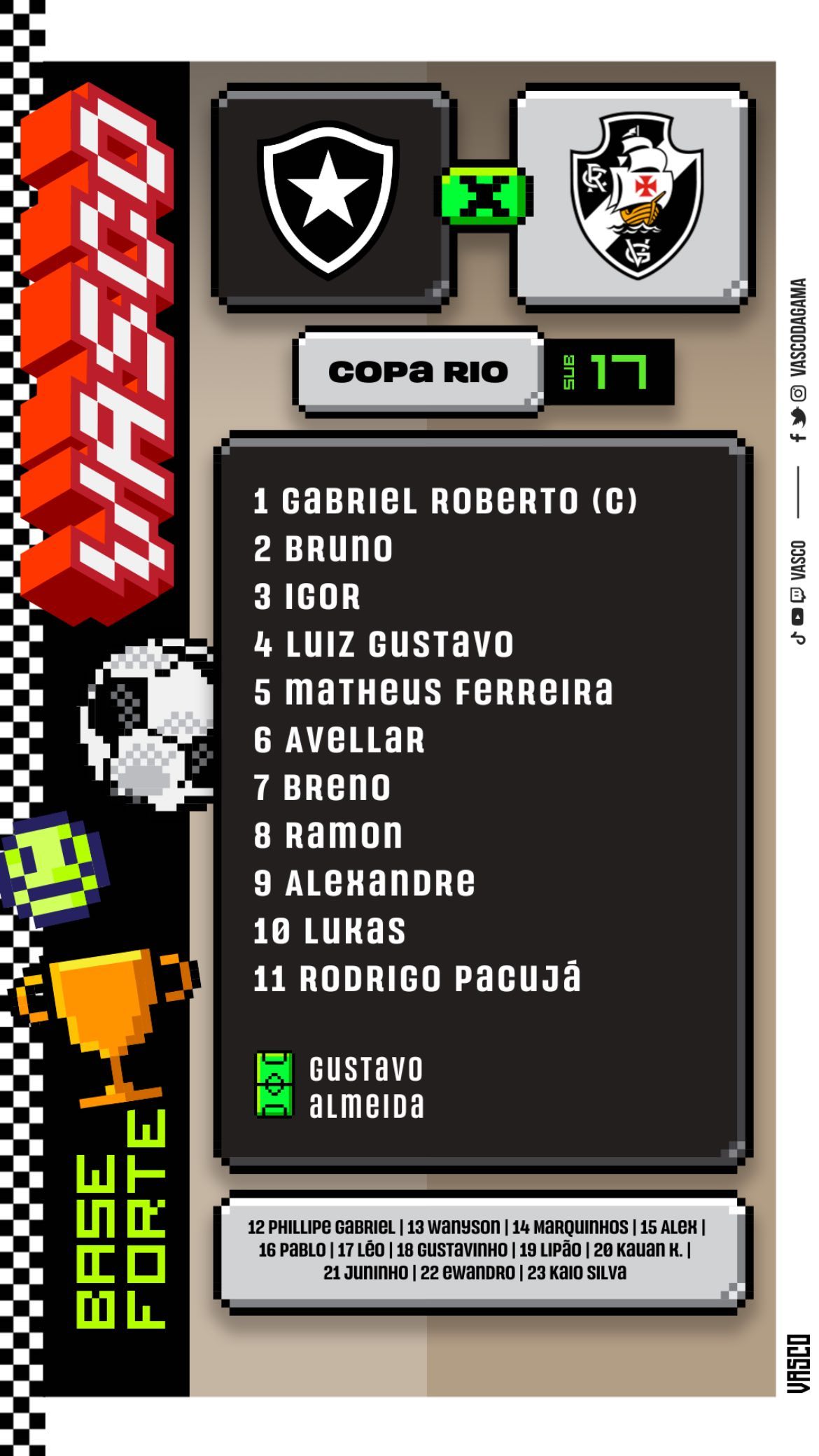 21/05/23 - Sub-15: Confira a escalação do Vasco para o jogo contra o Botafogo
