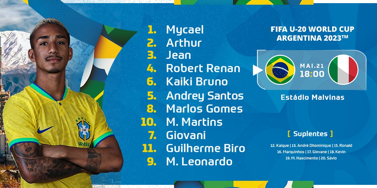 18:00 - Com Andrey Santos e Marlon Gomes titulares, Seleção Sub-20 enfrenta a Itália pelo Mundial; assista