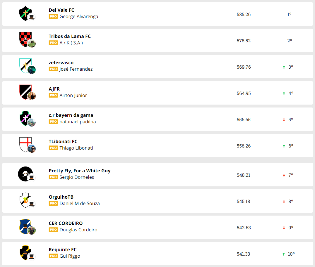10/05/23 - Cartola: Confira a classificação da Liga NETVASCO após a 4ª rodada