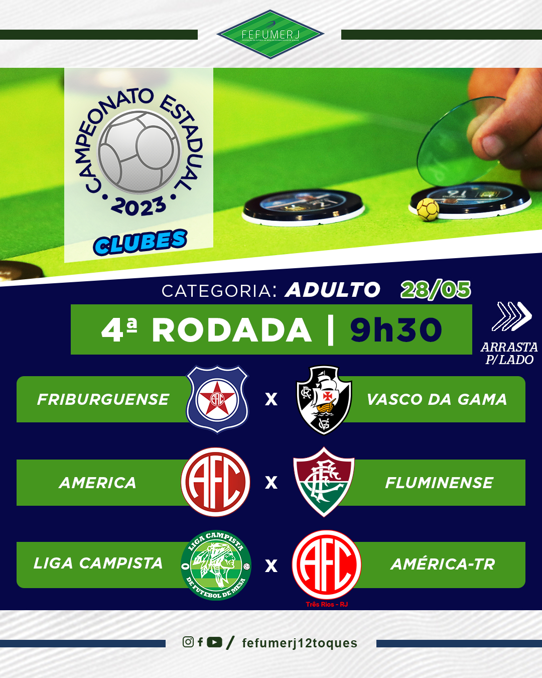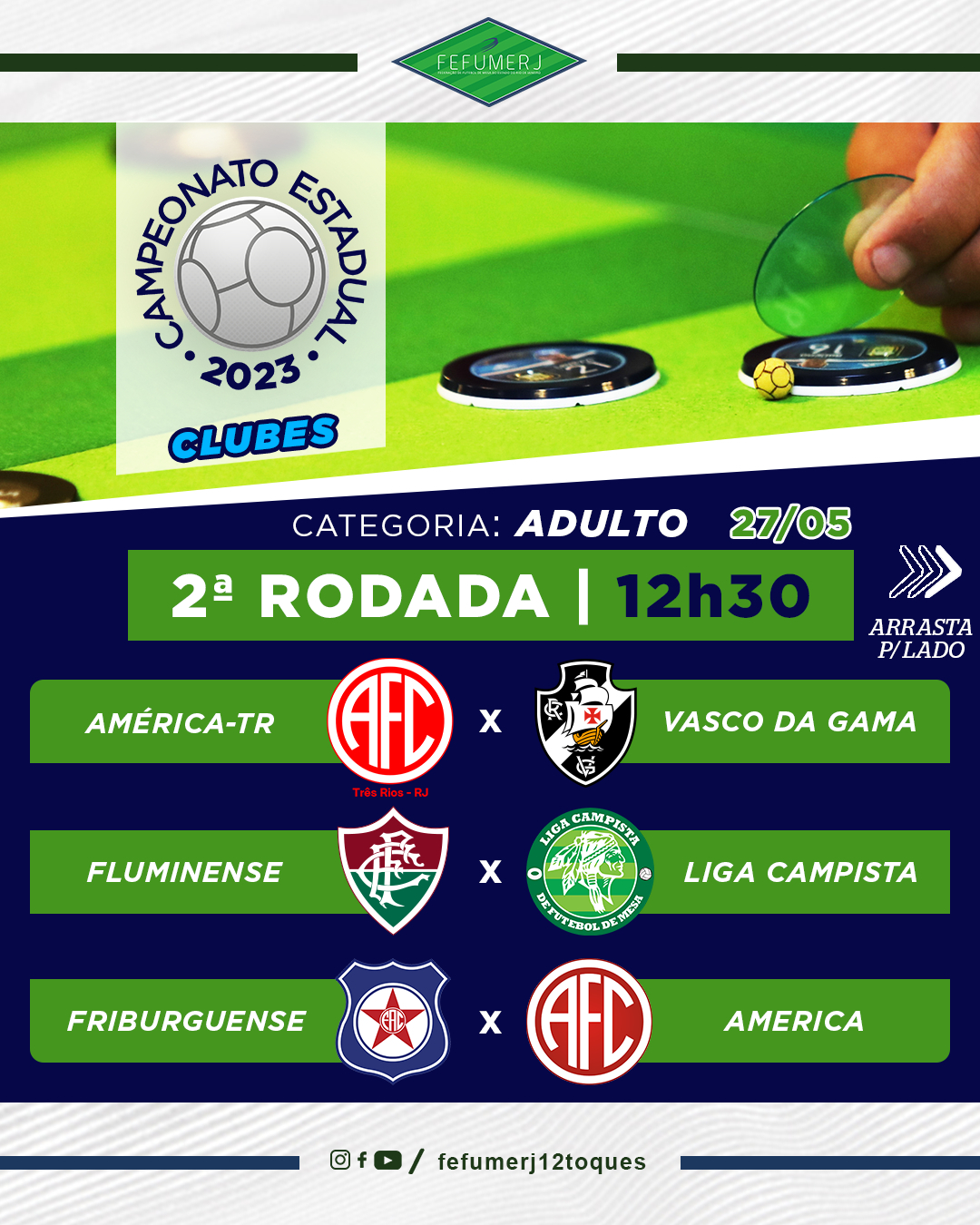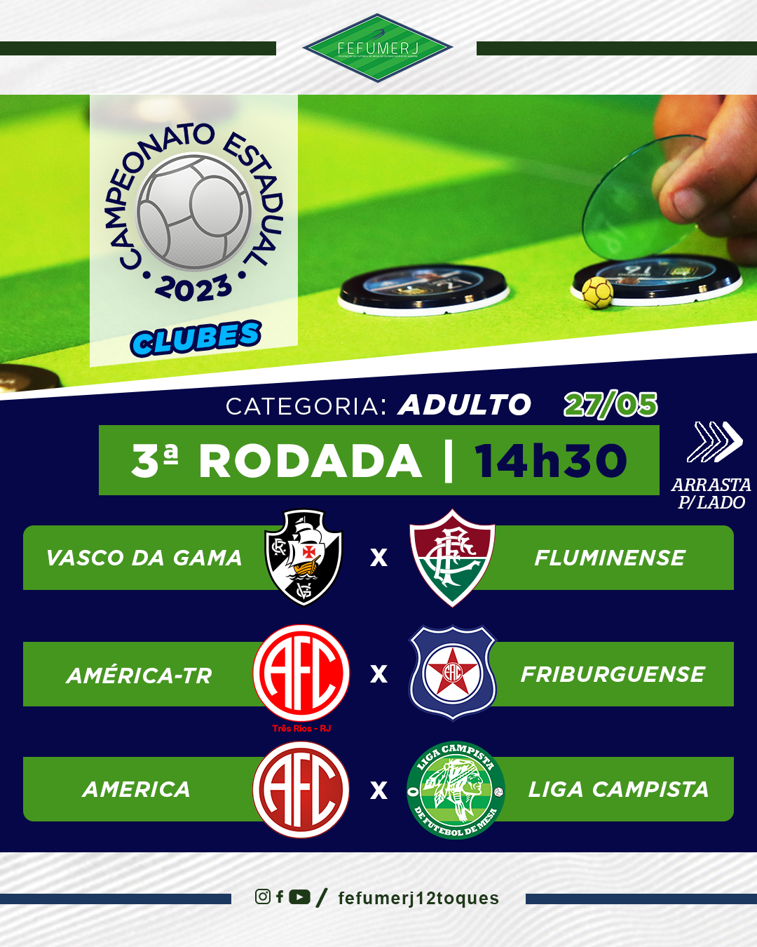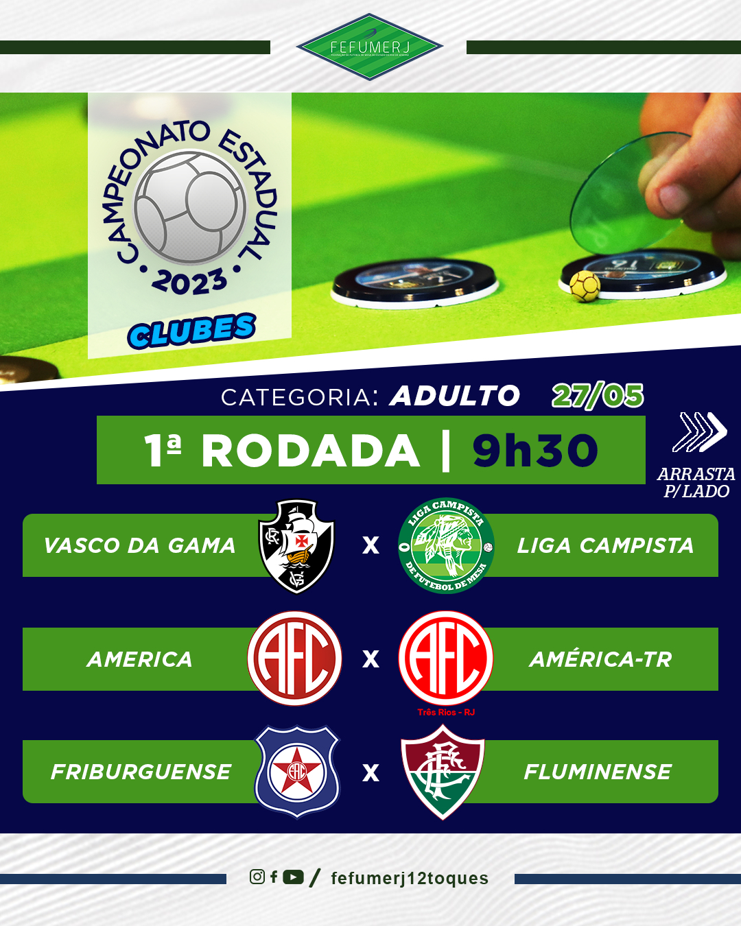 A temporada do Estadual de Clubes 2023 já começou !!! E neste final de semana, 27 e 28 de maio, será a vez da categoria Adulto disputar a Taça Guanabara de Clubes. A competição será realizada no Botafogo FR @bfrfuteboldemesa a partir das 9h30. Confira a tabela ! ⏩