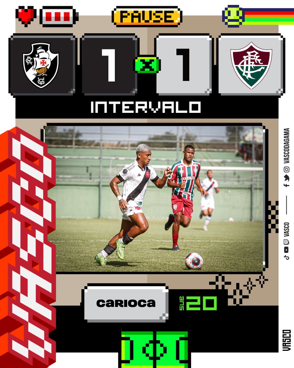 Sub-20: Intervalo no Nivaldo Pereira; Vasco vai empatando com o Fluminense por 1 a 1