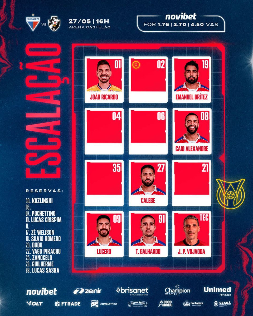 Além do Vasco, Fortaleza também divulgou escalação neste sábado sem nomes de jogadores negros