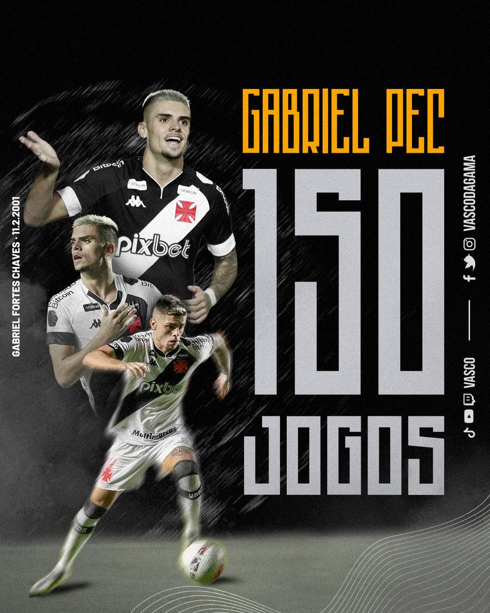 Em São Januário desde os oito anos, Gabriel Pec completa na partida deste sábado (27/05), diante do Fortaleza, a marca de 150 jogos pelo Gigante da Colina.
