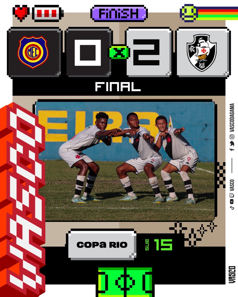 O Vasco da Gama enfrentou o Madureira na tarde deste sábado (27), no Estádio Aniceto Moscoso, pela rodada derradeira da fase de grupos da Copa Rio Sub-15. Com gols de Nathan e Kauan Victor, o Gigante venceu por 2 a 0.