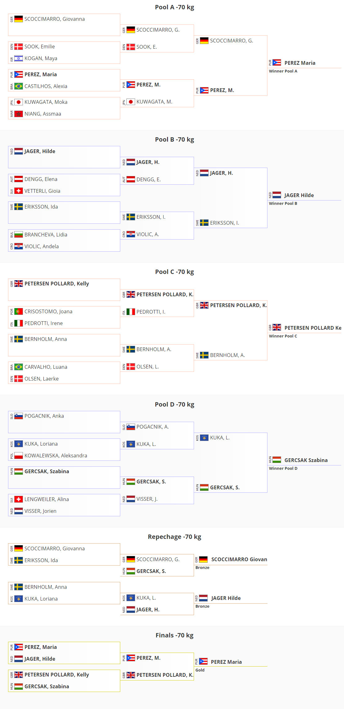 Nas quartas, Mantena encarou a francesa Manon Deketer, medalhista de bronze mundial, que superou a brasileira por ippon. Na repescagem, Gabi encarou Magdalena Krssakova, da Áustria, que projetou a brasileira no Golden score e foi à disputa de bronze.