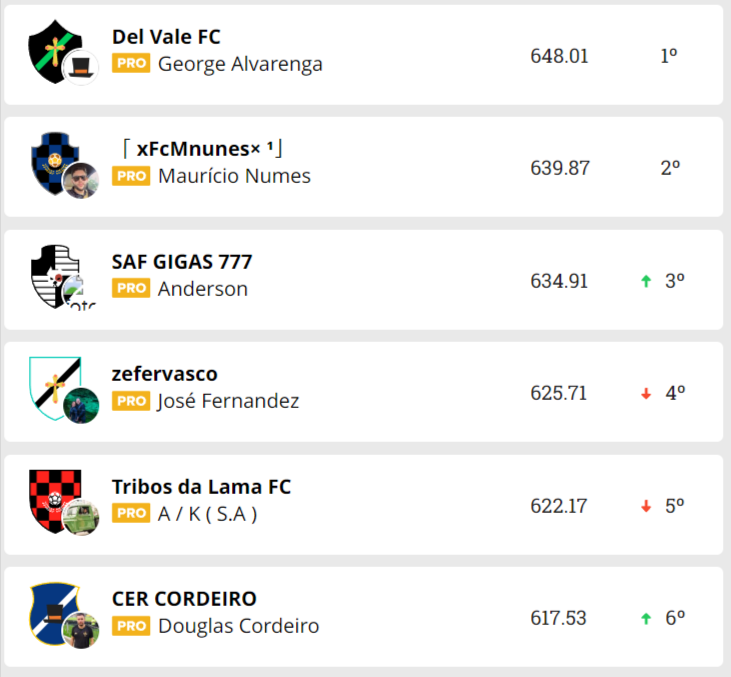15/05/23 - Cartola: Confira a classificação da Liga NETVASCO após a 6ª rodada