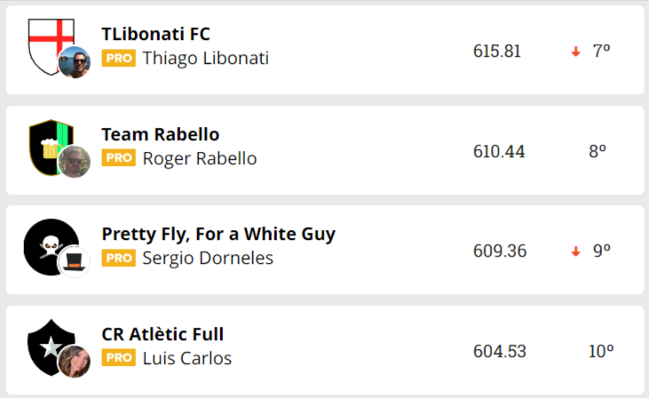 10/05/23 - Cartola: Confira a classificação da Liga NETVASCO após a 4ª rodada