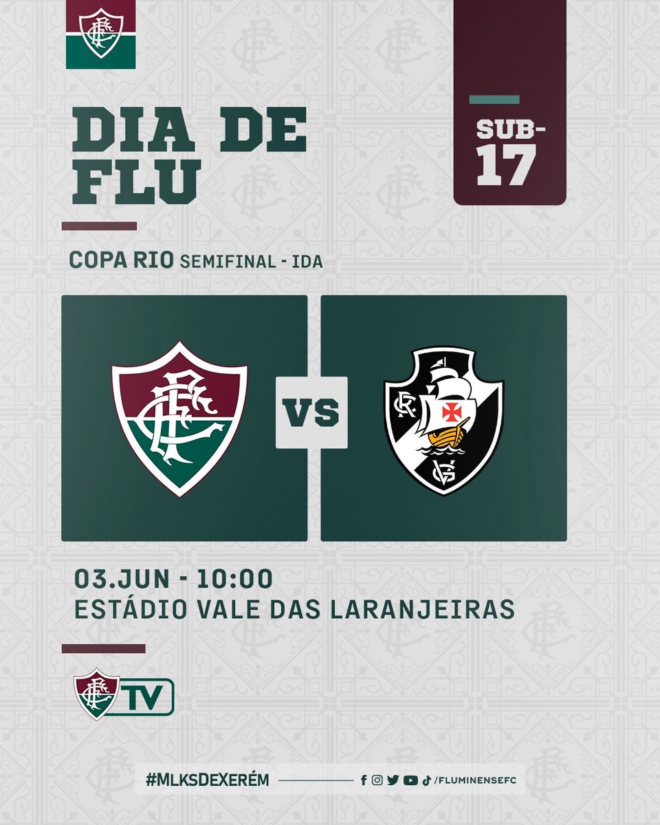 Amanhã é #DiaDeFlu para os #MlksDeXerém! Às 10h, o Flu enfrenta o Vasco na partida de ida da semifinal da Copa Rio Sub-17! VAMOS!