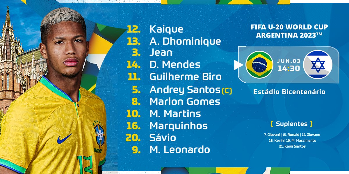 Andrey Santos e Marlon Gomes serão titulares na Seleção Sub-20 contra Israel