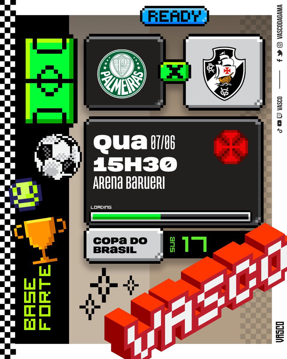 Sub-17: Vasco enfrenta o Palmeiras nesta 4ª-feira às 15h30 pelo jogo de volta da semi da Copa do Brasil com Sportv