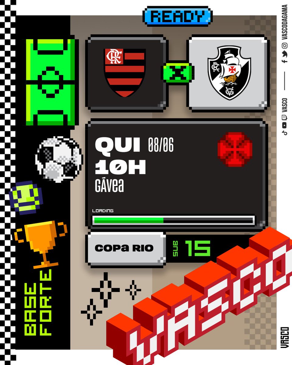 Sub-15: Vasco faz o 1º jogo da semi da Copa Rio nesta 5ª às 10h contra o Urubu na Gávea com Youtube