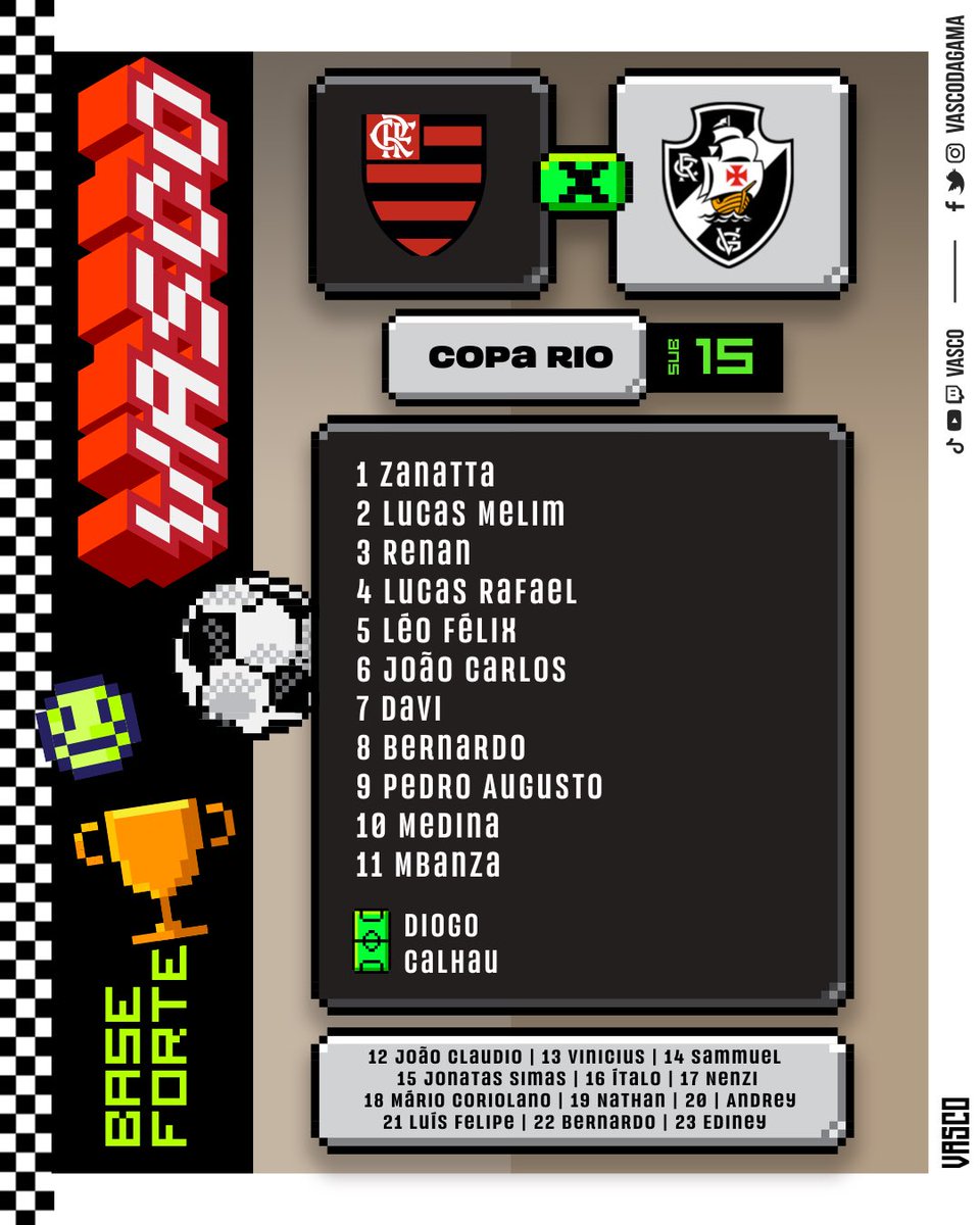 08/06/23 - Sub-15: Vasco faz o 1º jogo da semi da Copa Rio nesta 5ª às 10h contra o Urubu na Gávea com Youtube