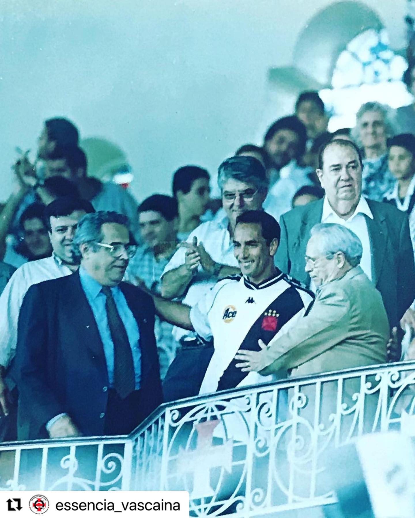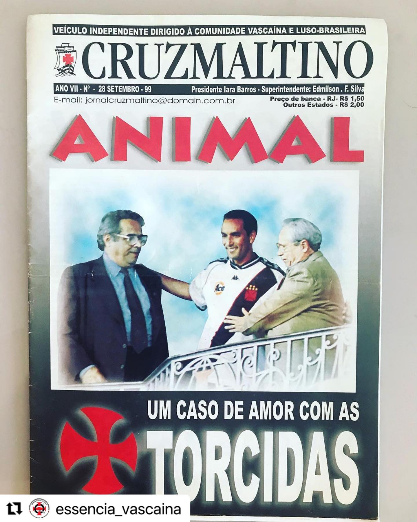 Amigos vascaínos, no dia 28 de Setembro de 1999 foi estampada na revista Cruzmaltino essa foto emblemática que deu origem a capa da revista. Este foi o dia da apresentação do retorno de Edmundo ao Vasco, após passagem pela Fiorentina da Itália. Acervo pessoal.