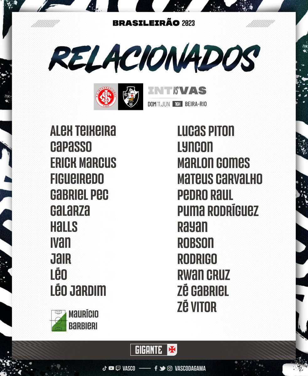đź“‹ Relacionados para a viagem rumo a Porto Alegre, onde o Vasco enfrenta o Internacional no domingo đź’˘