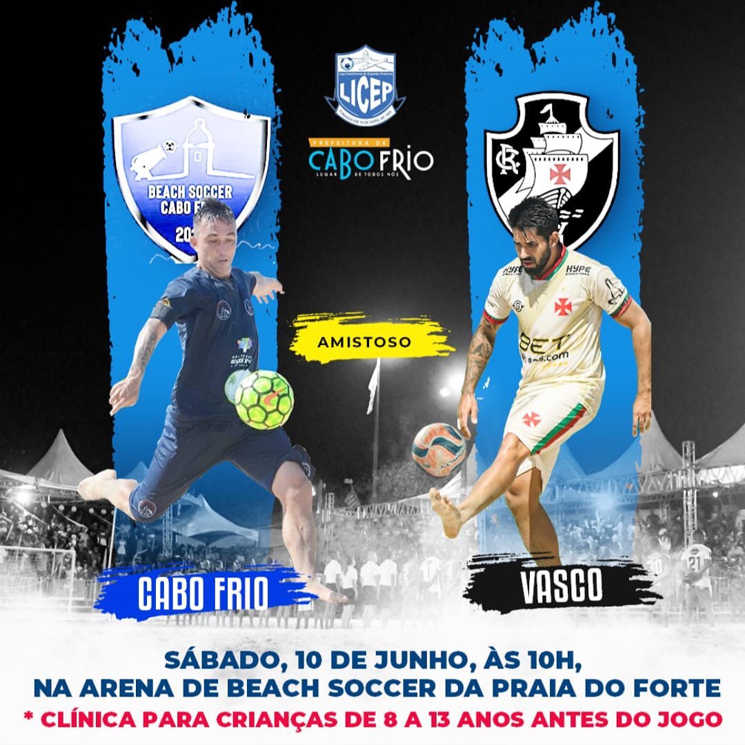 Beach Soccer: Vasco faz amistoso contra o Cabo Frio neste sábado às 10h em Cabo Frio