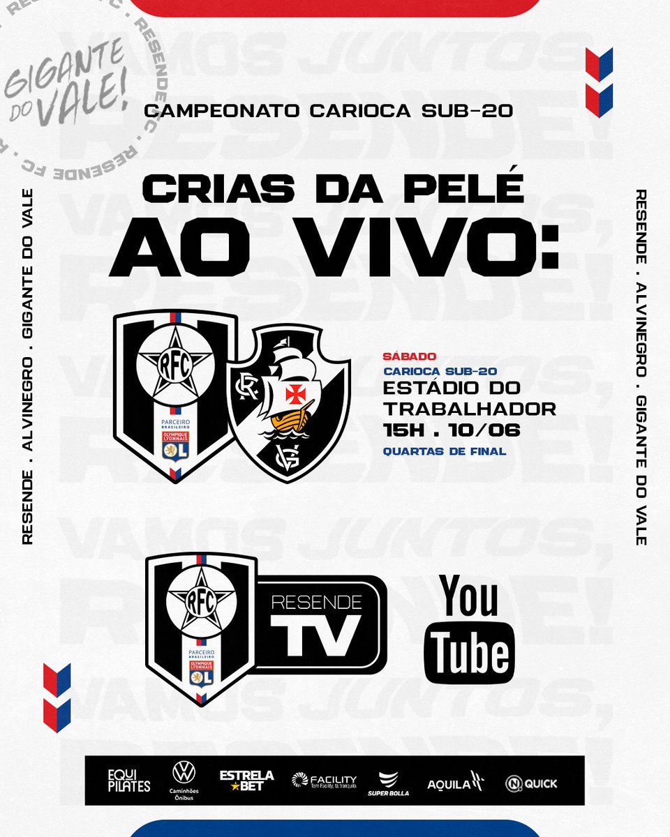 O sub-20 do Resende enfrenta o Vasco pelas quartas de final do #CariocãoSub20 e você assiste ao vivo na ResendeTV.