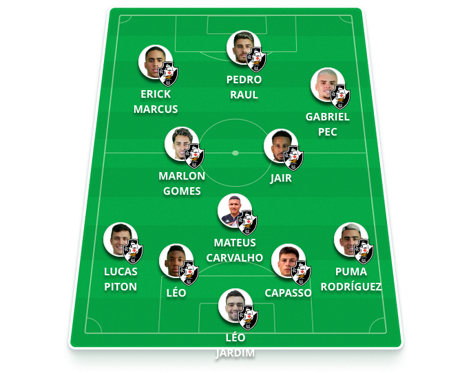 Provável time: Léo Jardim, Puma, Capasso, Léo, Lucas Piton; Matheus Carvalho, Jair, Marlon Gomes, Erick Marcus (Alex Teixeira ou Rayan), Gabriel Pec e Pedro Raul.