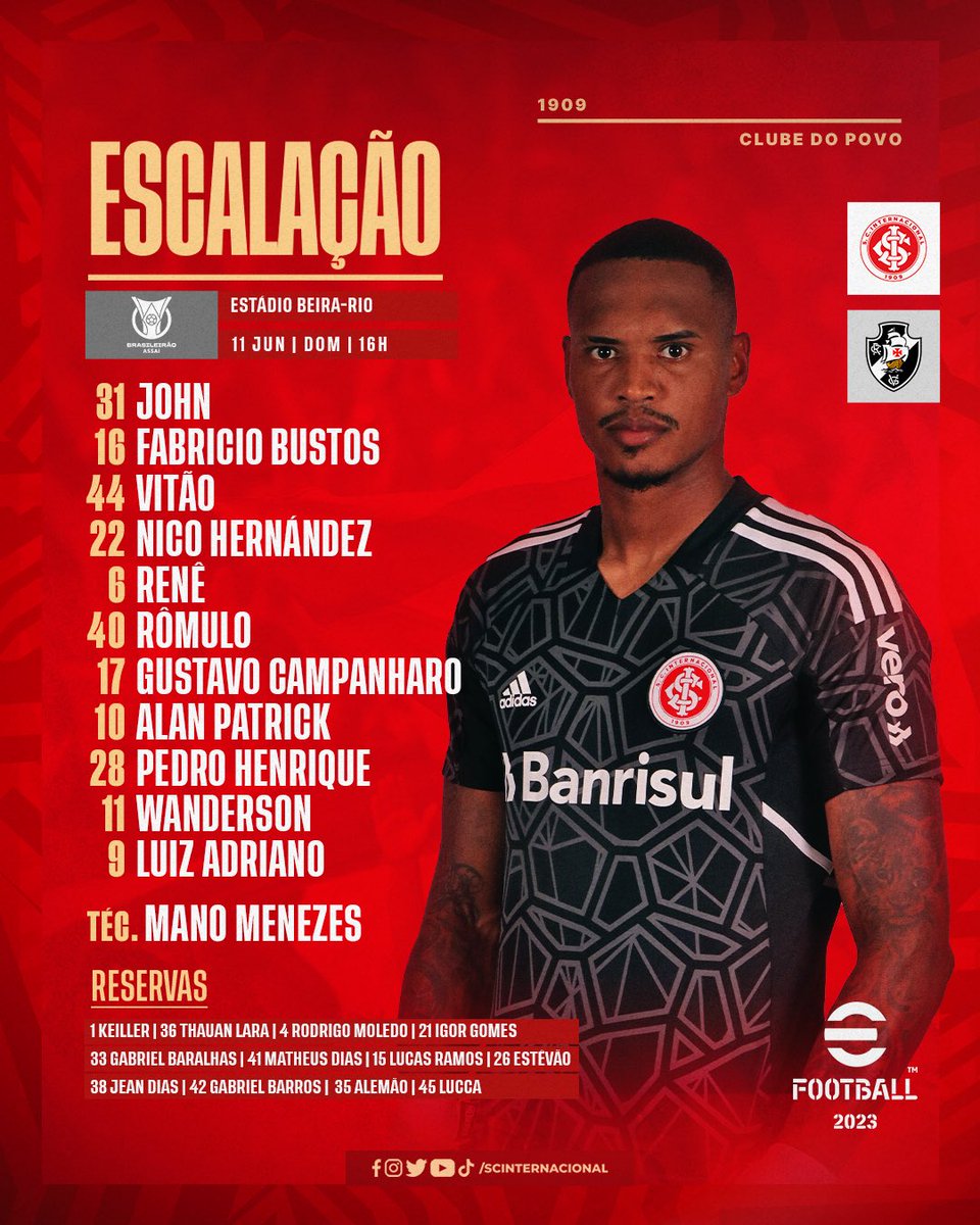 Veja a escalação do Internacional para o jogo contra o Vasco