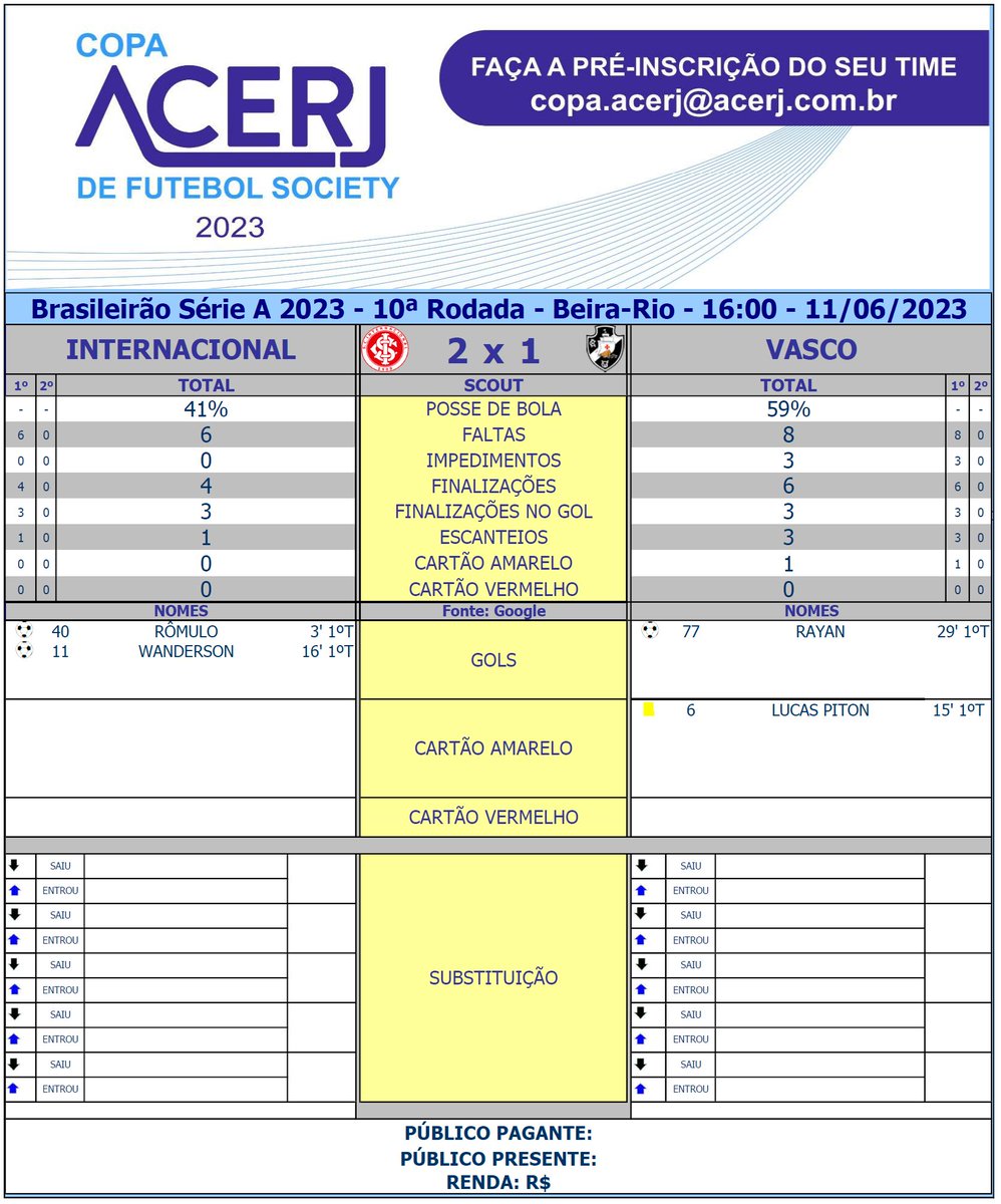 Scout do 1º Tempo de Internacional e Vasco pela 10ª Rodada do Campeonato Brasileiro 2023 no Beira-Rio (Fonte: Google) #Acerjinforma #Brasileirao #INTxVAS #SCInternacional #Vasco @Brasileirao @SCInternacional @VascodaGama