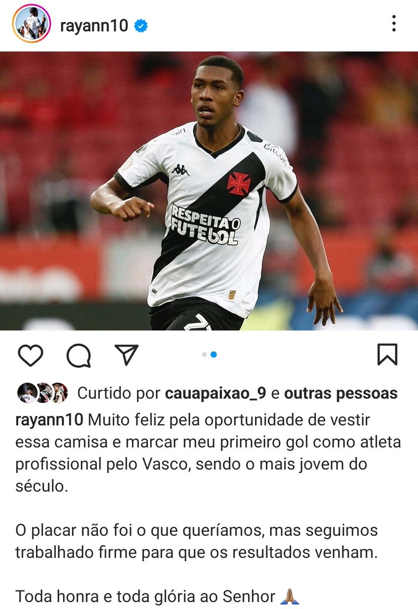 Rayan comemora estreia como titular da equipe profissional do Vasco