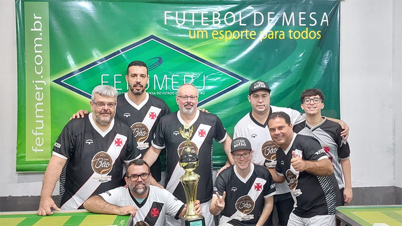 Dezoito equipes guerreiras! Setenta e dois botonistas imortais! Um só objetivo! Em um duelo de gigantes, digno da tradição da modalidade dadinho no Rio de Janeiro, a luta pelo título da Taça Fefumerj foi emocionante, cruel, acirrada. Tal qual um highlander das mesas — afinal só pode haver um campeão —, o Vasco A não perdeu sua cabeça e, aliando força e talento, bateu o America A na finalíssima da Série Ouro, por 2 a 1, para levar, sem derramamento de sangue, mais um troféu para sua vasta coleção. Com direito ao tradicional grito de casaca e com o hino cruzmaltino bradado nos quatro cantos da bela sede do Botafogo Futmesa, domingo (11/6), na Lapa.