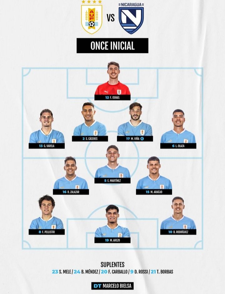 O Lateral-direito Puma Rodríguez não foi relacionado para a partida entre Uruguai x Nicarágua.