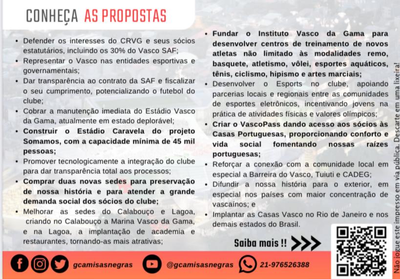 "Quando a gente fala em auditar a SAF, eu quero dizer auditar os processos e inclusive a SAF, ela é um dos erros processuais que aconteceram nos últimos três anos. A gente colocou três contadores nossos da campanha para revisar os balanços que foram apresentados até agora e ninguém conseguiu chegar a falar com certeza sobre o lançamento do dinheiro de venda do Vasco. Surgiu essa proposta de ajustar porque o sócio não teve acesso ao contrato, quando a gente cobra é alegado confidencialidade e somos os únicos", disse o vice-presidente do Camisas Negras.
