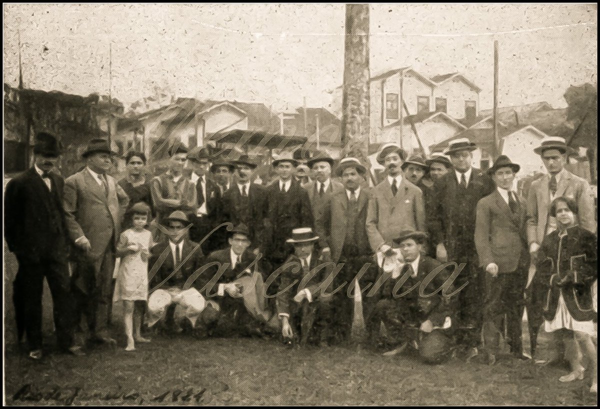 Vemos o Grande Benemérito José Ribeiro de Paiva - O Almirante - (o terceiro em pé da esquerda para a direita) tesoureiro que manteve sólidas as contas do Vasco pagando com juros a todos aqueles que adquiriram as debêntures para o financiamento privado da construção do Stadium em São Januário.