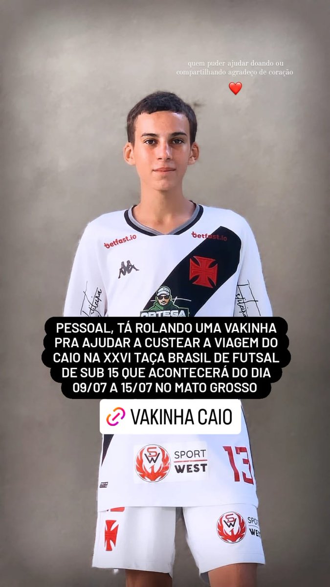 Caio precisa ir ao Mato Grosso no dia 09/07 para disputar a Taça Brasil de Futsal pelo Vasco.