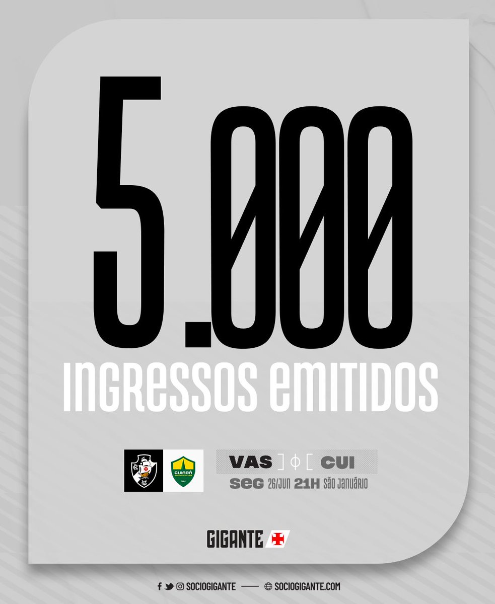 Já foram emitidos 5 mil ingressos para Vasco x Cuiabá