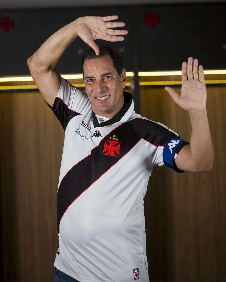 Edmundo posa com réplica de sua camisa de 1997 e reencena comemoração histórica; veja fotos