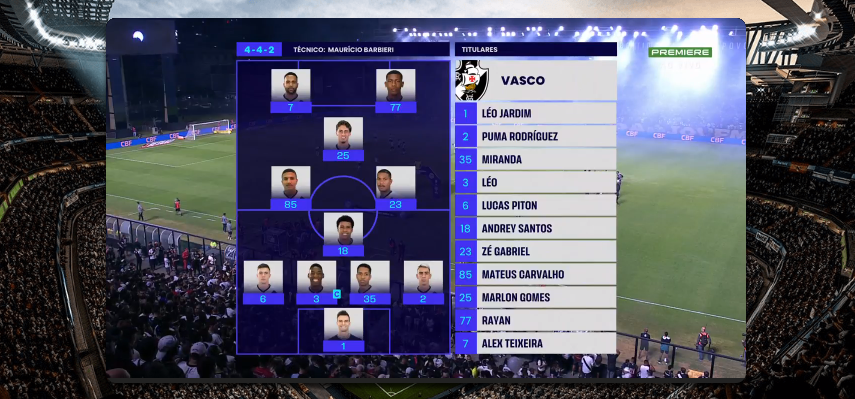 Veja a disposição tática do time titular do Vasco desta 5ª-feira