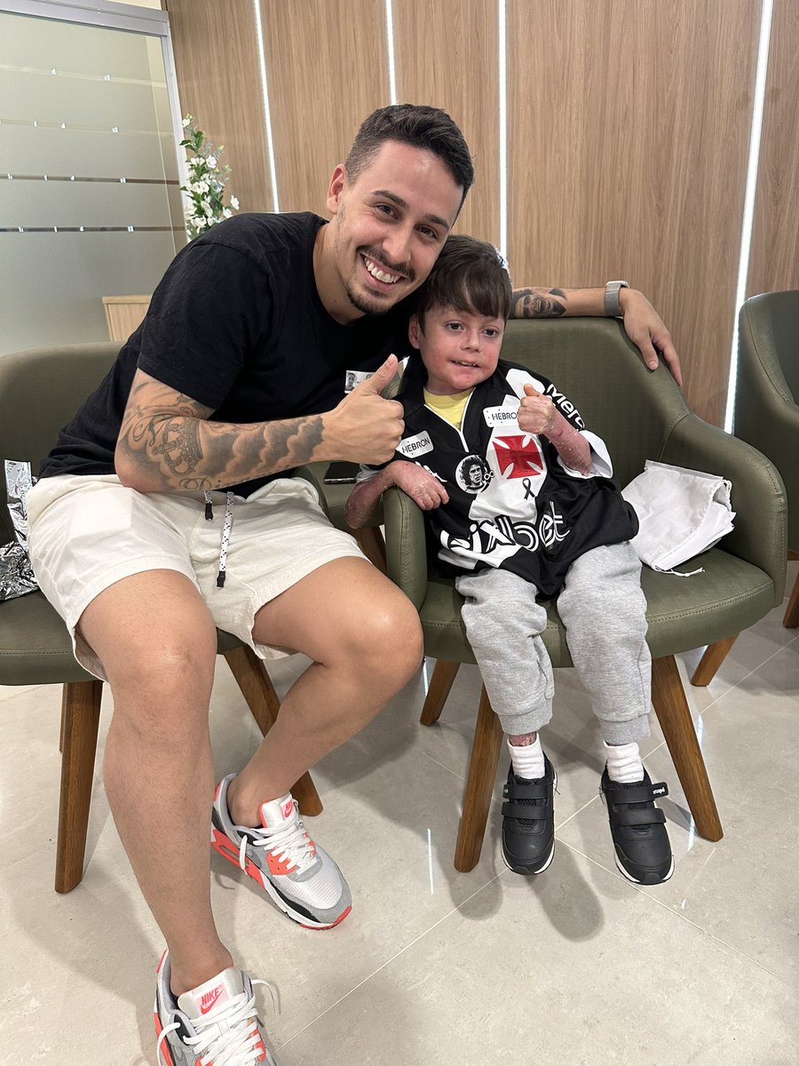 Rodrigo Dinamite dá camisa do Vasco a pequeno torcedor que ficou 15 dias em coma por doença rara