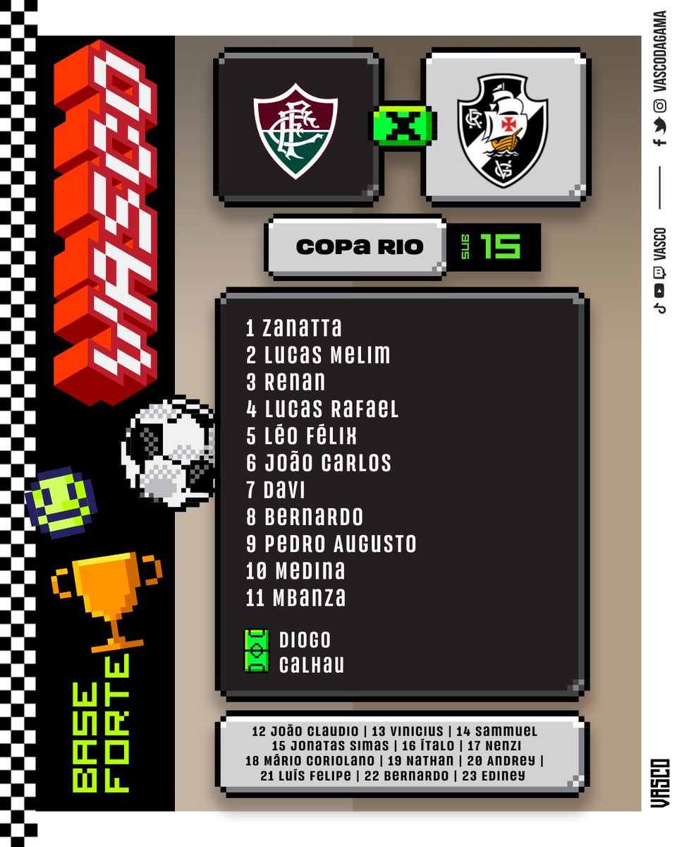 Sub-15 escalado para a final da Copa Rio. Acompanhe pela Vasco TV!