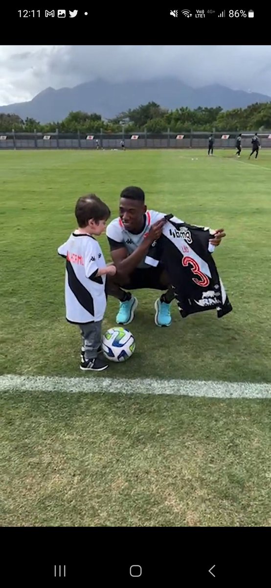 O garoto Gui ganhou muitos presentes na visita ao CT Moacyr Barbosa na manhã de hoje. Além de recebidos do clube, o atacante Pedro Raul deu um par de chuteiras e o zagueiro Léo de uma camisa autografado pro menino @SuperesportesMG
