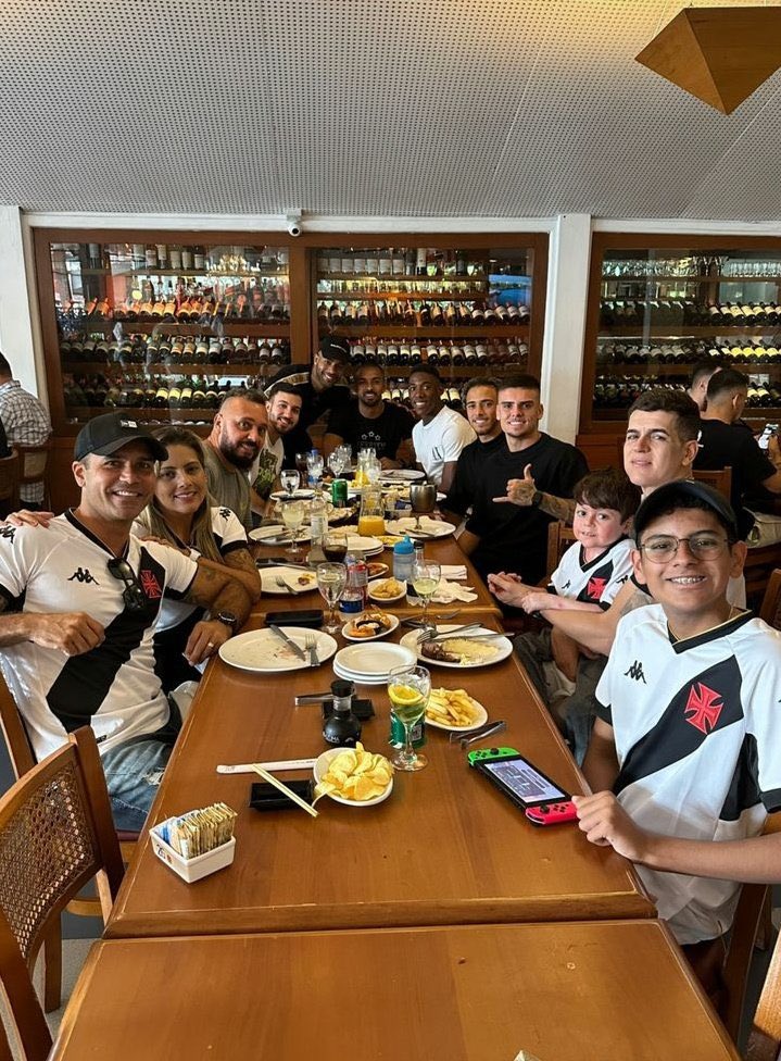 Depois de visitar o CT Moacyr Barbosa, o menino Gui foi almoçar com seu amigo Pec e outros jogadores do Vasco! ❤️