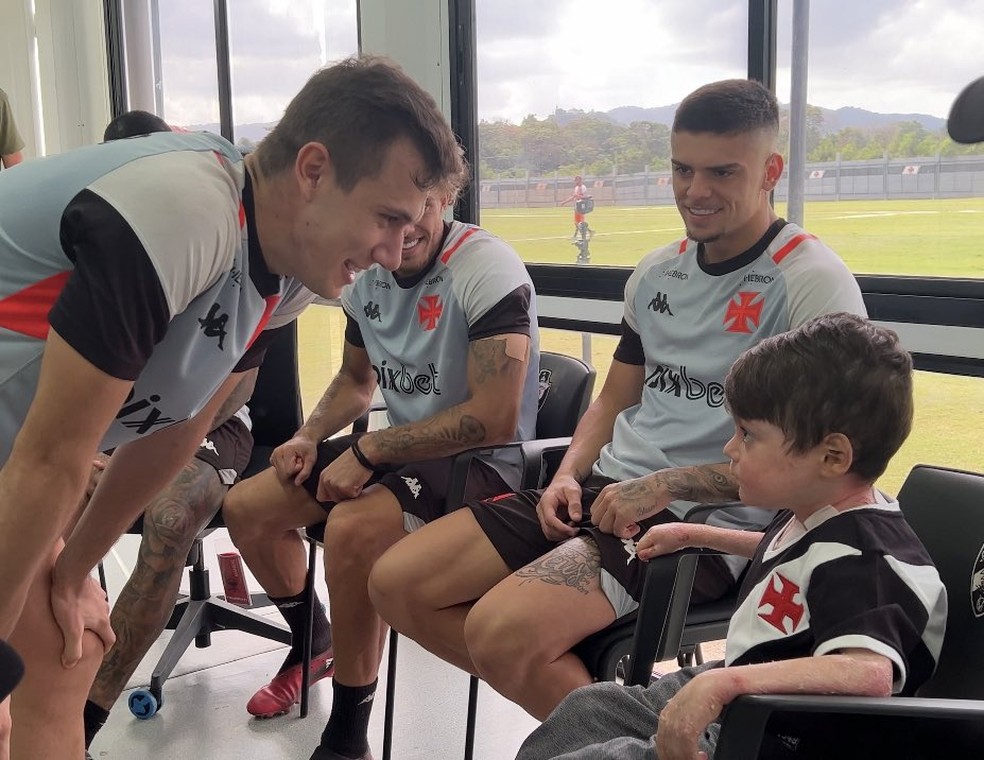 Veja detalhes da visita do pequeno torcedor Gui ao elenco do Vasco no CT Moacyr Barbosa