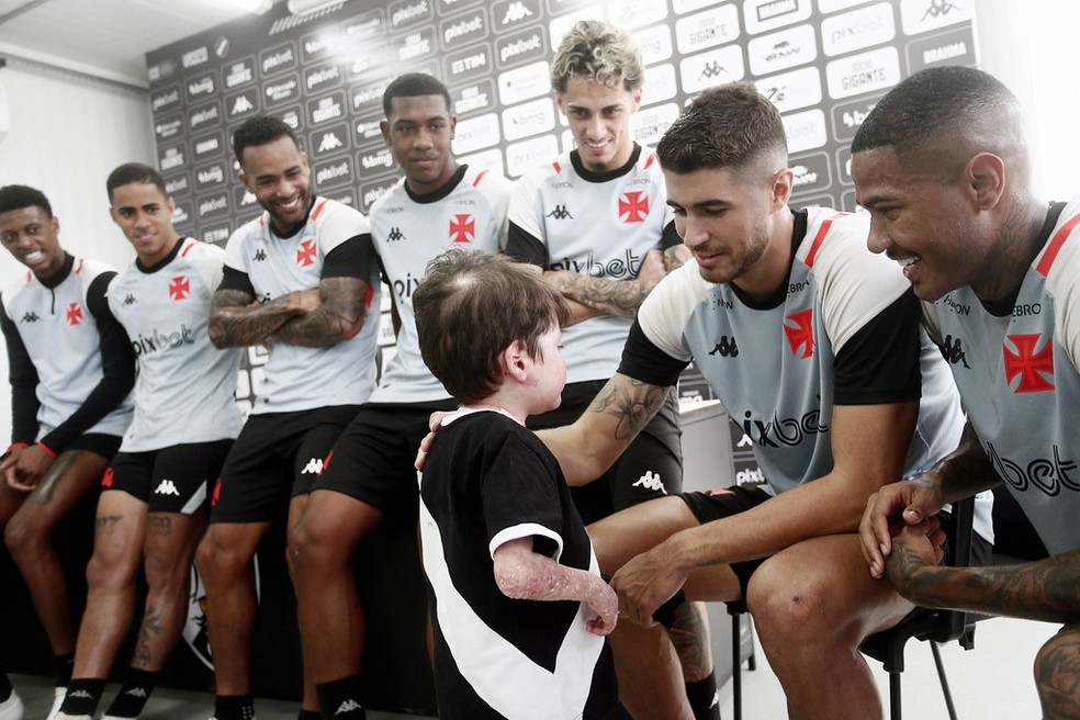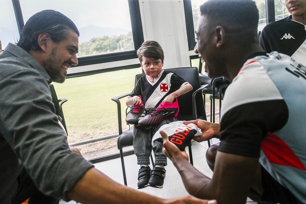 Após receber alta do hospital, na última terça, o pequeno vascaíno Guilherme Gandra Moura, de 8 anos, visitou o Centro de Treinamento do Vasco, nesta sexta-feira. Gui, que viralizou na internet após reencontrar a mãe no hospital depois de ficar 16 dias em coma induzido, tem uma doença genética rara, a epidermolise bolhosa.