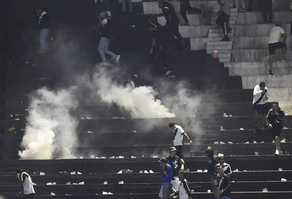 De outro lado, a baderna iniciou-se na parte interna do estádio, ao fim do jogo".