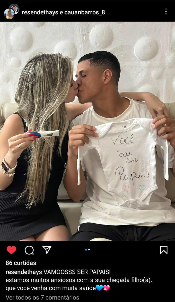 PAPAIS DO ANO! O volante Barros e sua noiva anunciaram, via Instagram, que serão papais em breve!