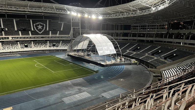 Palco de show da cantora Ludmilla está sendo montado no Engenhão, local de Botafogo x Vasco neste domingo
