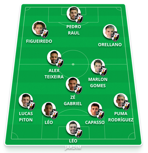 Provável escalação: Léo Jardim, Pumita, Capasso, Léo, Piton; Zé Gabriel, Marlon Gomes, Alex Teixeira, Figueiredo, Orellano e Pedro Raul.