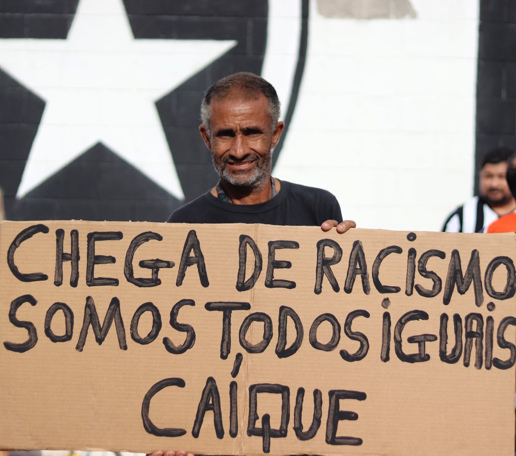 Torcedor-símbolo Caíque pede o fim do racismo em cartaz; veja