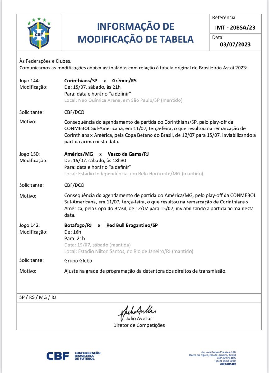 E o @AVascainos ainda informou que é grande a possibilidade de que o jogo contra o América seja remarcado para o mês de OUTUBRO.