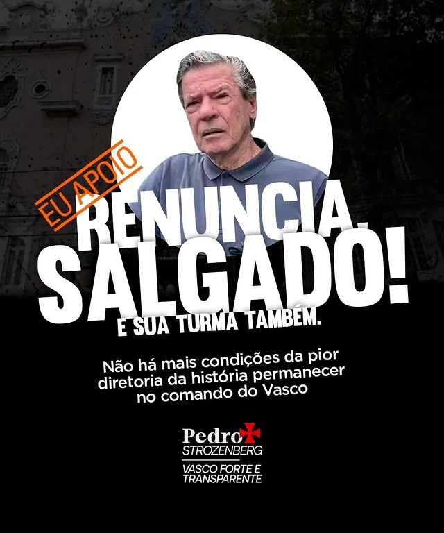 Salgado é um presidente sem moral para cobrar da SAF, pois foi ele, e sua turma, que entregaram o futebol do clube sem proteção e sem transparência. Os vascaínos exigem saber o que de fato foi negociado. Vamos juntos por um Vasco forte e transparente!