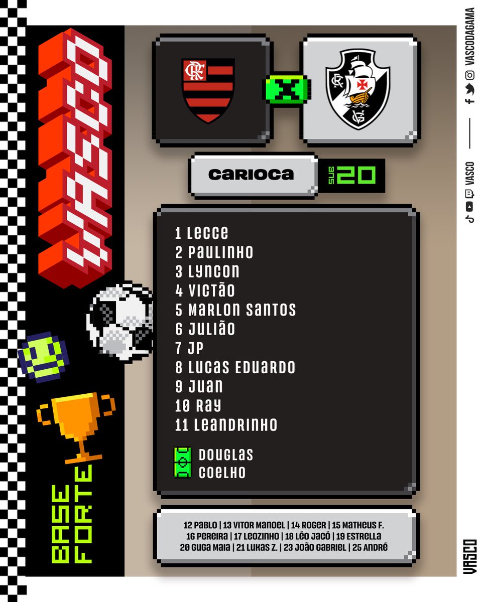 📋 Sub-20 escalado para enfrentar o Flamengo no jogo de ida da Final do Carioca. Acompanhe pela VascoTV!