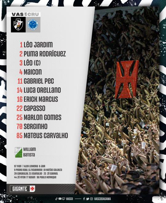 𝕍𝔸𝕊ℂ𝕆 𝔻𝔸 𝔾𝔸𝕄𝔸 escalado para enfrentar o Cruzeiro! 📋